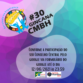Promovida pela Comissão de Jovens do Conselho Metropolitano de Belo Horizonte a Gincana é oportunidade para integração e fortalecimento de vínculos entre os jovens dos Conselhos Centrais. Os desafios propostos têm como objetivo desenvolver habilidades de planejamento, estratégia, liderança e irmandade sempre com foco no serviço de amor e cuidado com os mais pobres e excluídos da sociedade.